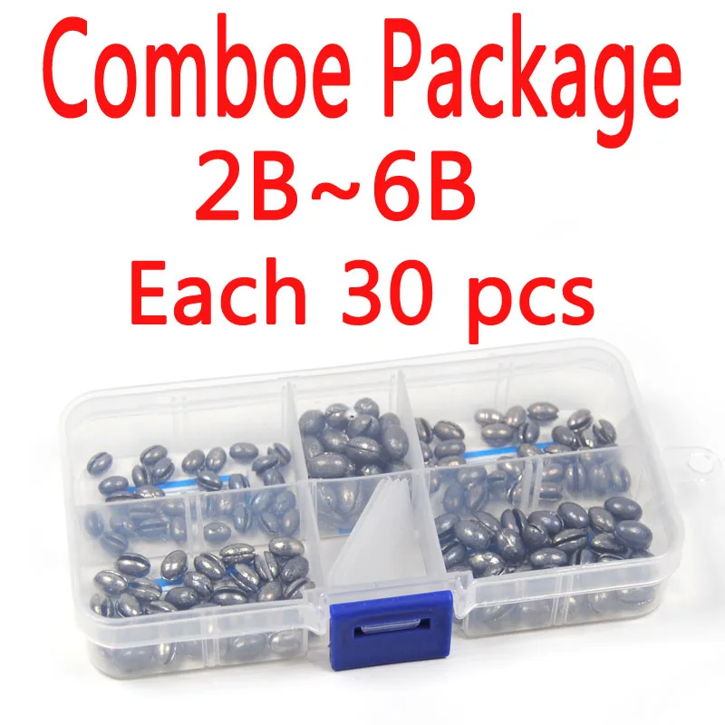 Comprar [Comboe Pacote 2B ~ 6B Cada 30 pcs Total 150 pcs] Sólidos Oval Split Shot Chumbo Chumbada de Pesca Acessórios isca Baratas Online Preço.