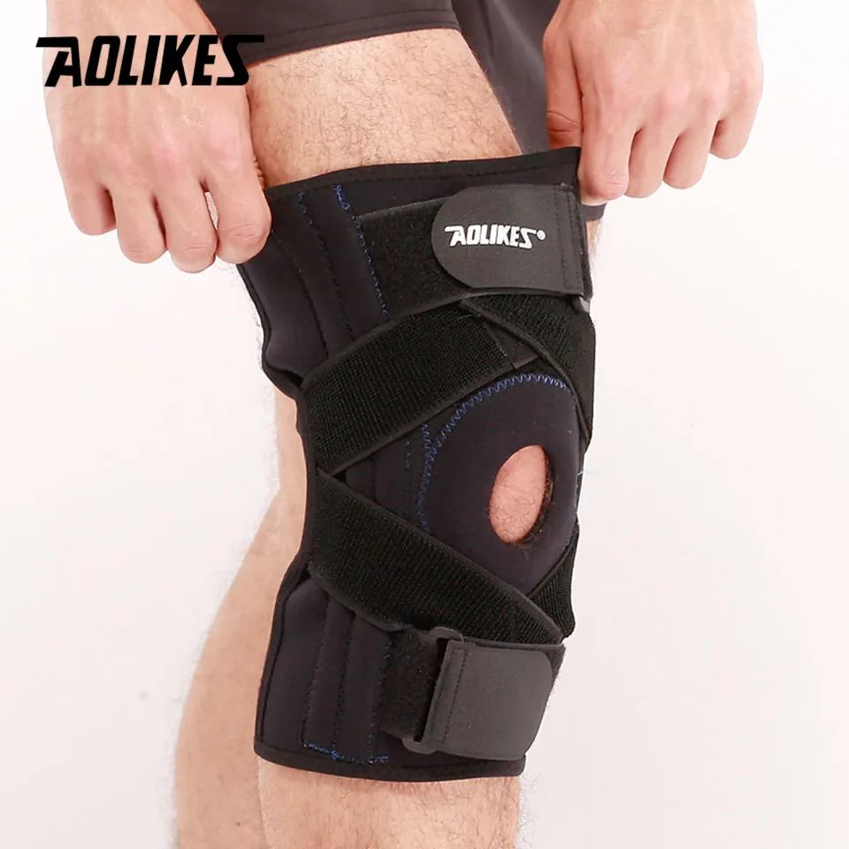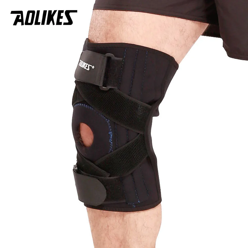 . Melhor AOLIKES 1 PCS Profissional Lesão Do Menisco Do Joelho Pad Protetor de joelho Apoio para o punho Esportes Joelheira Segurança rodilleras Tático Cinta Barato Online Preço.