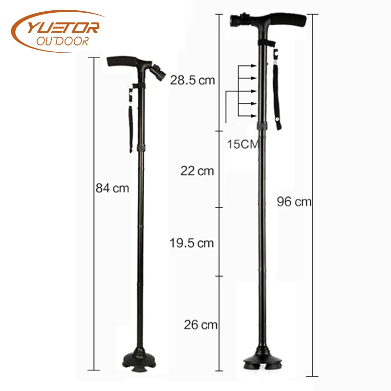 Comprar YUETOR led light old man folding trekking poles T handle man hiking poles cane walking stick for elders bastones para ancianos Baratas Online Preço.