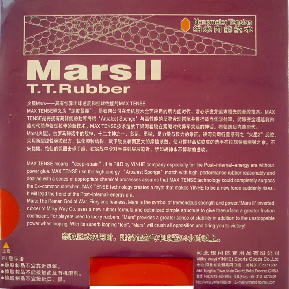 Comprar Yinhe Galáxia Via Láctea Mars II Fábrica Tuned pips in ténis de mesa de pingue pongue de borracha com esponja 2.2mm Baratas Online Preço.